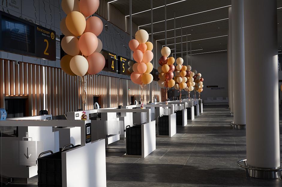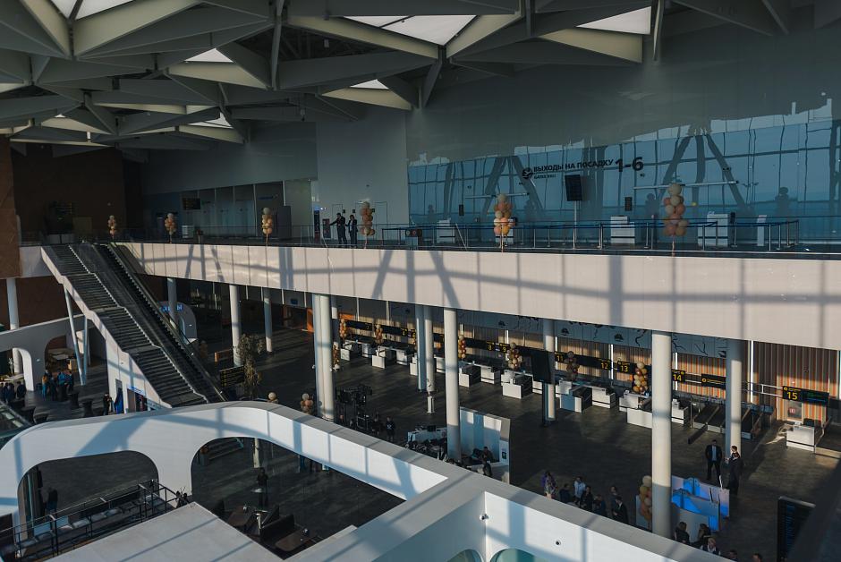 В новый аэровокзал переведены все внутренние рейсы. Обслуживание международных рейсов в новом терминале планируется начать в летний период.